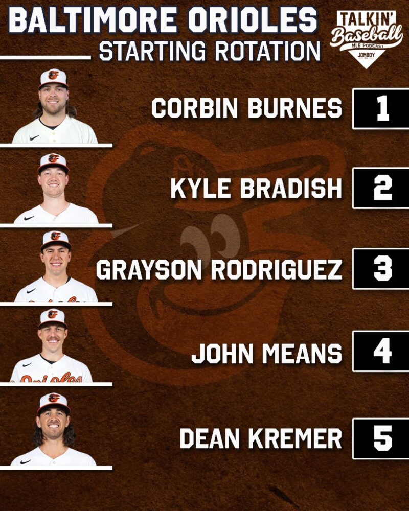 Aquí hay un vistazo a cómo podría lucir la rotación de los Orioles al comienzo de la temporada: Corbin Burnes, Kyle Bradish, Grayson Rodriguez, John Means y Dean Kremer.
