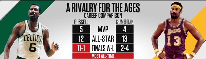 Russel dominó en la única estadística que le importaba: 11 campeonatos contra dos.
