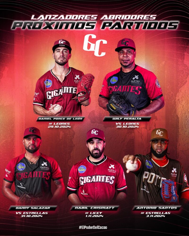 San Francisco de Macorís. – El dirigente Wellington Cepeda anunció la rotación de abridores para los próximos cinco juegos y señaló al importado Daniel Ponce de León para iniciar el partido de mañana Vs Leones del Escogido.