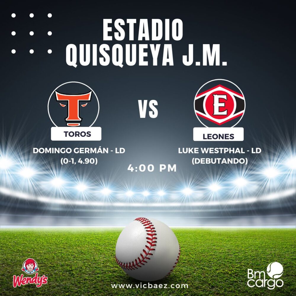 Cartelera completa este domingo en LIDOM, a celebrarse en Santo Domingo, Santiago y San Pedro de Macorís.
