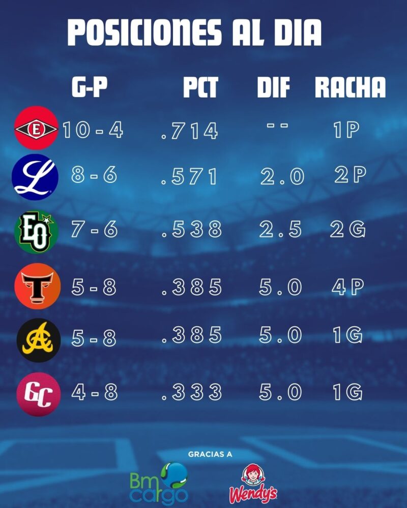 La tabla de posiciones dividida en dos: