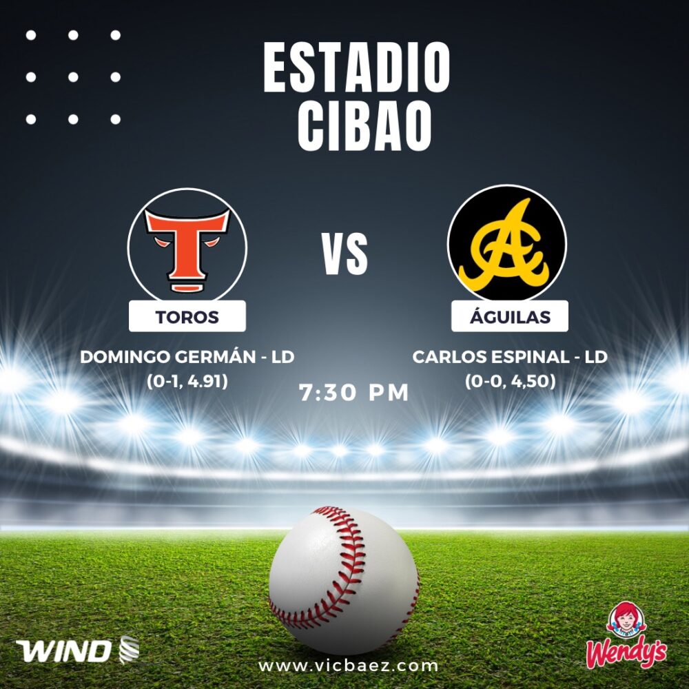Partidos y lanzadores anunciados para este jueves en LIDOM 31 octubre, 2024 Escrito por: Víctor Báez Cuota FacebookTwitterWhatsApp Comparte esto: Compartir en X (Se abre en una ventana nueva) X Comparte en Facebook (Se abre en una ventana nueva) Facebook Compartir en WhatsApp (Se abre en una ventana nueva) WhatsApp Enviar un enlace a un amigo por correo electrónico (Se abre en una ventana nueva) Correo electrónico Me gusta esto:Me gusta Cargando... Relacionado Etiquetasaguilas cibaenasestrelas orientalesgigantes del cibaolanzadores de hoy lidompartidos de hoy lidompelota invernaltoros del este Víctor Báez Más Recientes Efemérides: Esto pasó un día como hoy, 18 de abril Efemérides 18 abril, 2026 LNB: Metros vencen a los Soles; Titanes se imponen a Héroes de Moca Baloncesto 17 abril, 2026 LIV Golf dice que el circuito seguirá pese a informes de incertidumbre de fondos saudíes Otros 17 abril, 2026 Abogado de Tiger Woods combatirá orden judicial por recetas médicas Otros 17 abril, 2026 Dominicanos destacados, resultados y highlights del jueves en Grandes Ligas Beisbol 17 abril, 2026 Artículo anteriorEstrellas evitan barrida en serie de 3 juegos ante las ÁguilasArtículo siguientePartidos y lanzadores anunciados para este viernes en LIDOM DEJA UNA RESPUESTA Cancelar respuesta Comentario: Por favor ingrese su comentario! Nombre:* Por favor ingrese su nombre aquí Correo electrónico:* ¡Has introducido una dirección de correo electrónico incorrecta! Por favor ingrese su dirección de correo electrónico aquí Sitio web: Guardar mi nombre, correo electrónico y sitio web en este navegador la próxima vez que comente. Recibir un correo electrónico con los siguientes comentarios a esta entrada. Recibir un correo electrónico con cada nueva entrada. Δ