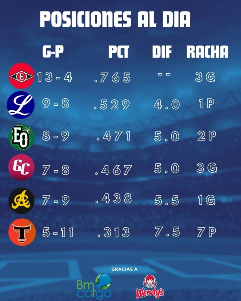 Partidos y lanzadores anunciados para este jueves en LIDOM 7 noviembre, 2024 Escrito por: Víctor Báez Cuota FacebookTwitterWhatsApp Solo 2 partidos este jueves en LIDOM, a celebrarse en Santo Domingo y Santiago Comparte esto: Compartir en X (Se abre en una ventana nueva) X Comparte en Facebook (Se abre en una ventana nueva) Facebook Compartir en WhatsApp (Se abre en una ventana nueva) WhatsApp Enviar un enlace a un amigo por correo electrónico (Se abre en una ventana nueva) Correo electrónico Me gusta esto:Me gusta Cargando... Relacionado Etiquetasaguilas cibaenasbeisbol invernal dominicanoestrellas orientaleslanzadores de hoy lidomleones del escogidolidomliga dominicana beisbolnoticias lidompartidos de hoy lidompelota invernalpelota invernal dominicanaresultados lidomtigres del licey Víctor Báez Más Recientes Luismal Ferreiras electo Jugador de la Semana en la LNB Baloncesto 21 abril, 2026 Cavaliers vencen a los Raptors y toman ventaja 2-0 en la serie Baloncesto 21 abril, 2026 CJ McCollum lidera remontada y Hawks sorprenden a Knicks para empatar la serie Baloncesto 21 abril, 2026 Edwards y Randle lideran una remontada furiosa y los Timberwolves empatan la serie ante Nuggets Baloncesto 21 abril, 2026 Dominicanos destacados, resultados y highlights del lunes en Grandes Ligas Beisbol 21 abril, 2026 Artículo anteriorEscogido remonta para vencer a las Estrellas en el QuisqueyaArtículo siguienteToros designan a Carlos Febles como dirigente sustituyendo a Offerman DEJA UNA RESPUESTA Cancelar respuesta Comentario: Por favor ingrese su comentario! Nombre:* Por favor ingrese su nombre aquí Correo electrónico:* ¡Has introducido una dirección de correo electrónico incorrecta! Por favor ingrese su dirección de correo electrónico aquí Sitio web: Guardar mi nombre, correo electrónico y sitio web en este navegador la próxima vez que comente. Recibir un correo electrónico con los siguientes comentarios a esta entrada. Recibir un correo electrónico con cada nueva entrada. Δ