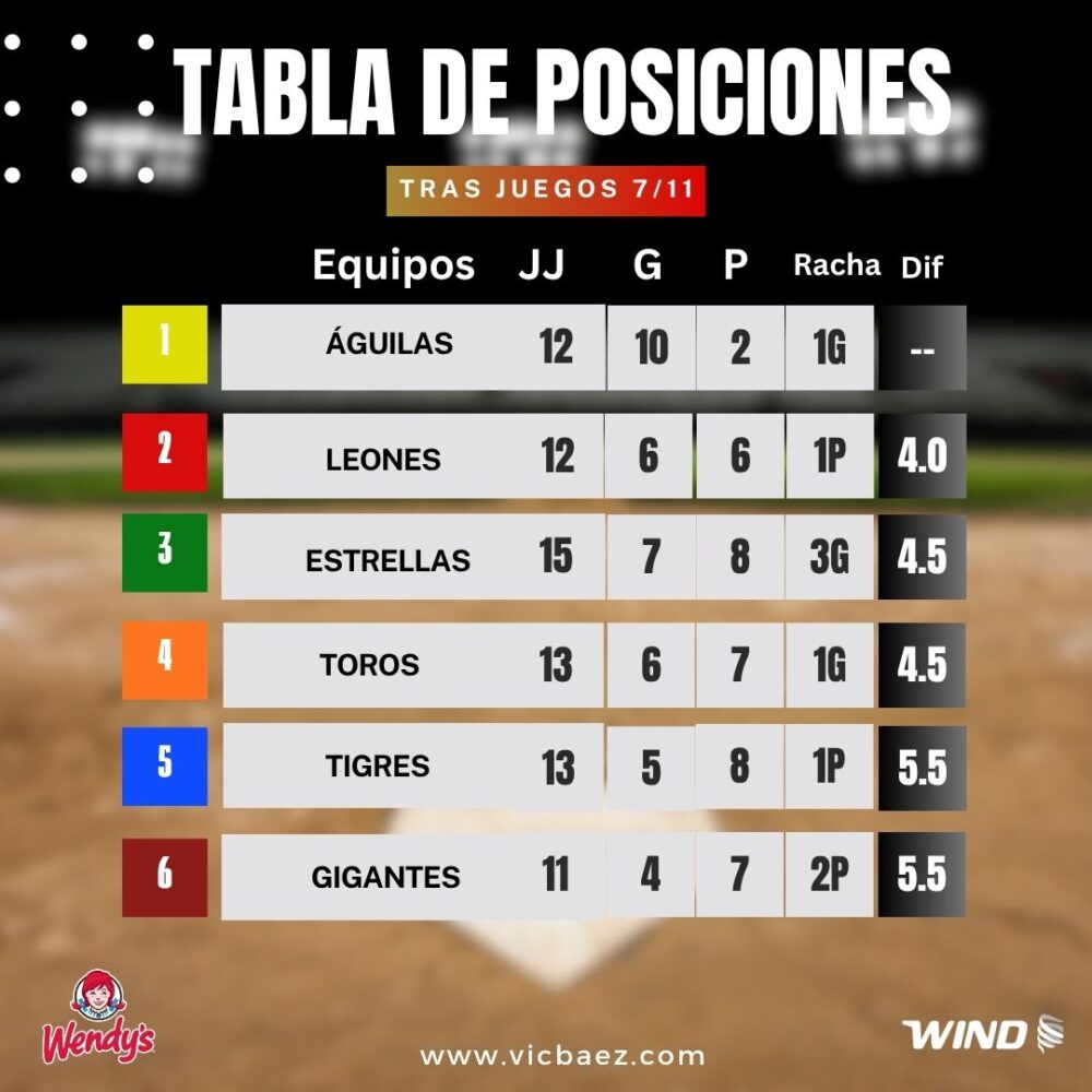 Cartelera completa este sábado en LIDOM, con dos partidos vespertinos y una tabla de posiciones con solo 1 equipo jugando por encima de .500