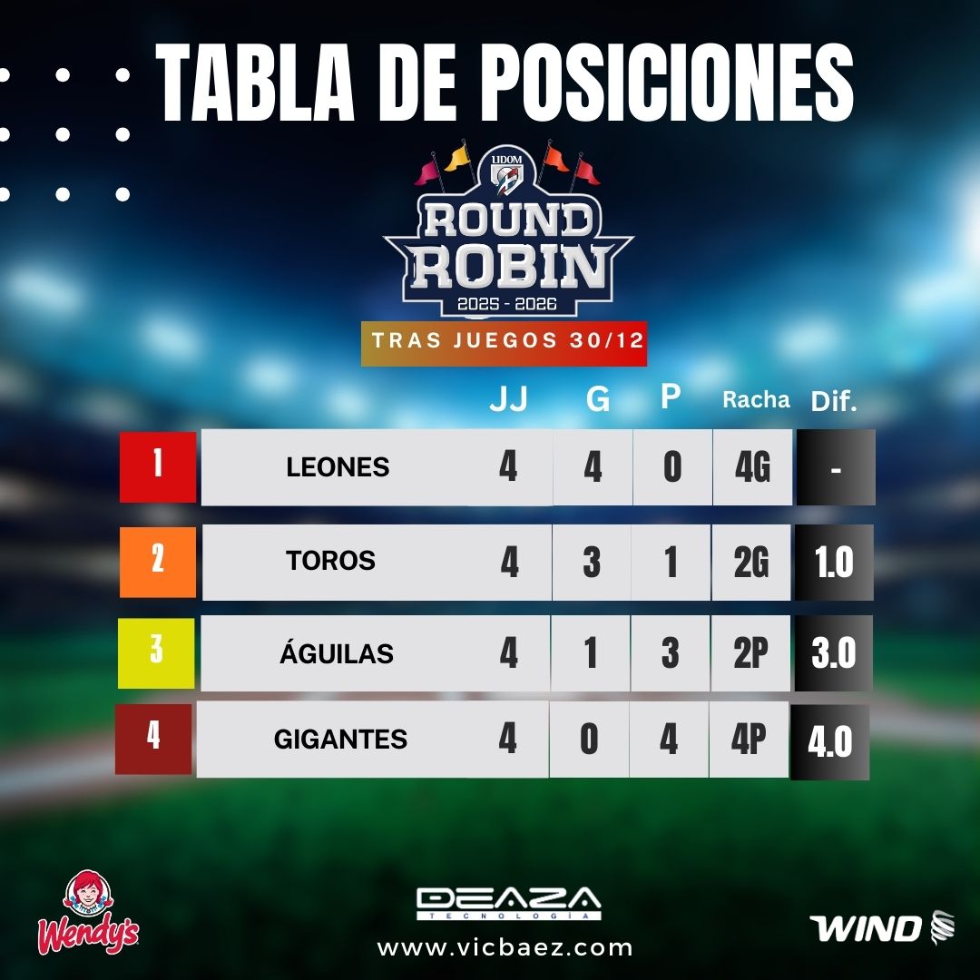 Se reanuda el Round Robin LIDOM con sus primeros partidos del 2026, a celebrarse en La Romana y Santiago.