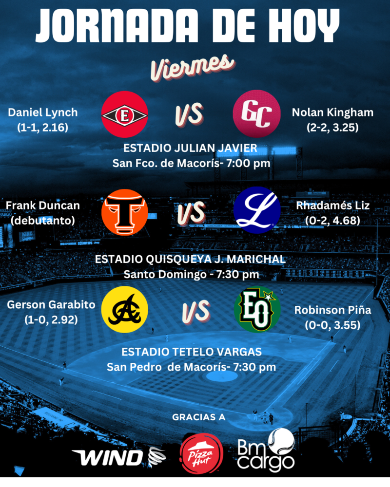 Partidos en Santo Domingo, San Francisco y San Pedro de Macorís, en los primeros encuentros del mes de diciembre.