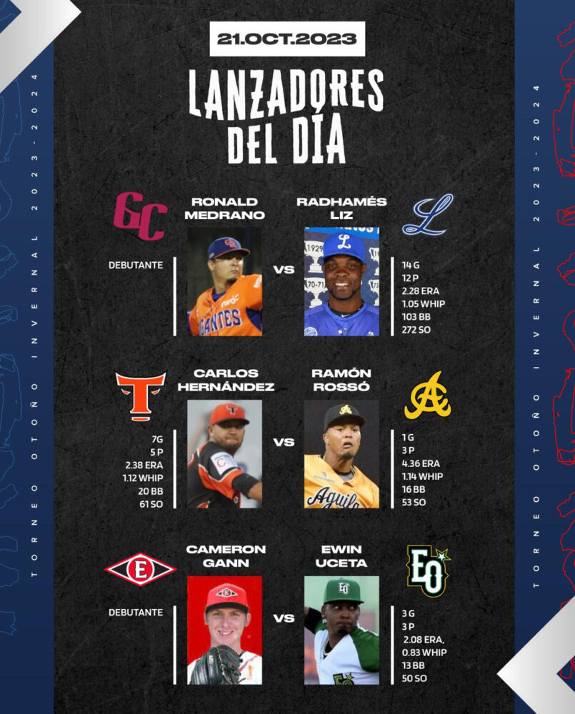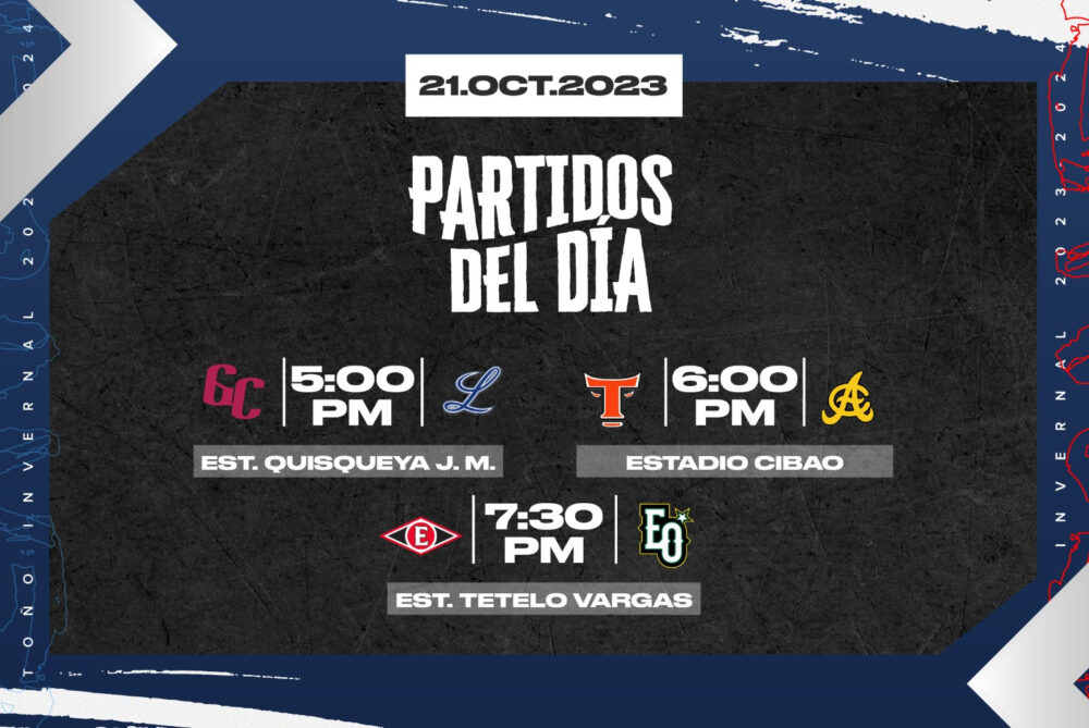Partidos y lanzadores de hoy sábado en LIDOM 21 octubre, 2023 Escrito por: Víctor Báez Cuota FacebookTwitterWhatsApp La acción continúa con los mismos partidos de ayer, pero cambiando de sede Comparte esto: Compartir en X (Se abre en una ventana nueva) X Comparte en Facebook (Se abre en una ventana nueva) Facebook Compartir en WhatsApp (Se abre en una ventana nueva) WhatsApp Enviar un enlace a un amigo por correo electrónico (Se abre en una ventana nueva) Correo electrónico Me gusta esto:Me gusta Cargando... Relacionado Víctor Báez Más Recientes Luismal Ferreiras electo Jugador de la Semana en la LNB Baloncesto 21 abril, 2026 Cavaliers vencen a los Raptors y toman ventaja 2-0 en la serie Baloncesto 21 abril, 2026 CJ McCollum lidera remontada y Hawks sorprenden a Knicks para empatar la serie Baloncesto 21 abril, 2026 Edwards y Randle lideran una remontada furiosa y los Timberwolves empatan la serie ante Nuggets Baloncesto 21 abril, 2026 Dominicanos destacados, resultados y highlights del lunes en Grandes Ligas Beisbol 21 abril, 2026 Artículo anteriorToros dejan a las Águilas en el terreno para su 1ª victoriaArtículo siguienteBates de las Águilas truenan ante Toros y logran 1ª victoria DEJA UNA RESPUESTA Cancelar respuesta Comentario: Por favor ingrese su comentario! Nombre:* Por favor ingrese su nombre aquí Correo electrónico:* ¡Has introducido una dirección de correo electrónico incorrecta! Por favor ingrese su dirección de correo electrónico aquí Sitio web: Guardar mi nombre, correo electrónico y sitio web en este navegador la próxima vez que comente. Recibir un correo electrónico con los siguientes comentarios a esta entrada. Recibir un correo electrónico con cada nueva entrada. Δ