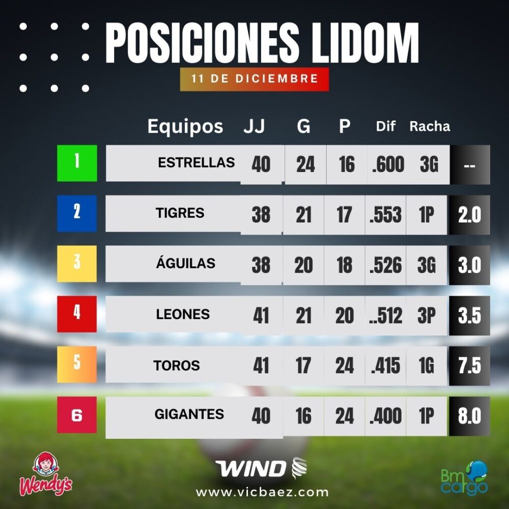 Partidos y posibles lanzadores de este jueves en LIDOM 12 diciembre, 2024 Escrito por: Víctor Báez Cuota FacebookTwitterWhatsApp Solo 2 partidos este jueves en LIDOM, a celebrarse en San Pedro de Macorís y Santiago Comparte esto: Compartir en X (Se abre en una ventana nueva) X Comparte en Facebook (Se abre en una ventana nueva) Facebook Compartir en WhatsApp (Se abre en una ventana nueva) WhatsApp Enviar un enlace a un amigo por correo electrónico (Se abre en una ventana nueva) Correo electrónico Me gusta esto:Me gusta Cargando... Relacionado Etiquetasaguilas cibaenasbeisbol invernal dominicanoestrellas orientalesgigantes del cibaolanzadores de hoy lidomleones del escogidolidomliga dominicana beisbolnoticias lidompartidos de hoy lidompelota invernalpelota invernal dominicanatigres del liceytoros del este Víctor Báez Más Recientes Efemérides: Esto pasó un día como hoy, 18 de abril Efemérides 18 abril, 2026 LNB: Metros vencen a los Soles; Titanes se imponen a Héroes de Moca Baloncesto 17 abril, 2026 LIV Golf dice que el circuito seguirá pese a informes de incertidumbre de fondos saudíes Otros 17 abril, 2026 Abogado de Tiger Woods combatirá orden judicial por recetas médicas Otros 17 abril, 2026 Dominicanos destacados, resultados y highlights del jueves en Grandes Ligas Beisbol 17 abril, 2026 Artículo anteriorÁguilas vuelven a vencer al Licey y quedan solas en 3ºArtículo siguienteRobinson Canó debutará mañana frente al Licey DEJA UNA RESPUESTA Cancelar respuesta Comentario: Por favor ingrese su comentario! Nombre:* Por favor ingrese su nombre aquí Correo electrónico:* ¡Has introducido una dirección de correo electrónico incorrecta! Por favor ingrese su dirección de correo electrónico aquí Sitio web: Guardar mi nombre, correo electrónico y sitio web en este navegador la próxima vez que comente. Recibir un correo electrónico con los siguientes comentarios a esta entrada. Recibir un correo electrónico con cada nueva entrada. Δ