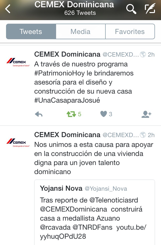 Posteriormente se anunció vía Twitter que la empresa CEMEX Dominicana se encargará de dar la anhelada casa al medallista dominicano.