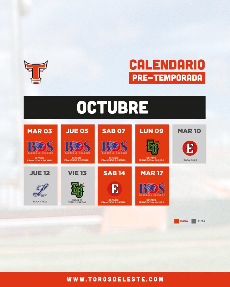 De igual forma, los Toros anunciaron su calendario de partidos de pretemporada, con un total de nueve encuentros, cinco de ellos con los equipos de la liga dominacana.