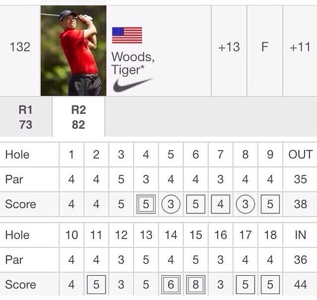 De esa manera Woods no hace el corte por segundo torneo consecutivo. Es la 12ª vez en el PGA Tour que no cruza para jugar en el fin de semana y la vez numero 13 como profesional.