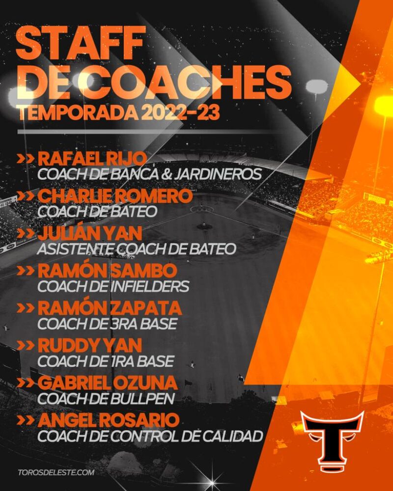 Los Toros del Este anunciaron el staff de coaches que estarán acompañando al dirigente Pat Listach en la temporada 2022-23 del beisbol invernal dominicano.