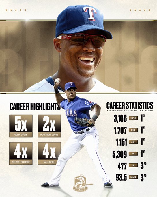 Beltré, el único tercera base en la historia con 3,000 hits y 400 jonrones en su carrera, recibió 366 votos en las 385 papeletas emitidas para ser el cuarto dominicano elegido para ingresar al pabellón de los inmortales en Cooperstown durante la última década.